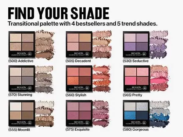 Descubre la paleta de sombras Revlon ColorStay, con una gama de colores vibrantes y duraderos que realzarán tu mirada. Su fórmula de larga duración te garantiza un maquillaje impecable todo el día. ¡Atrévete a experimentar con diferentes looks y resalta tu belleza con Revlon! Ideales para cosmetique...